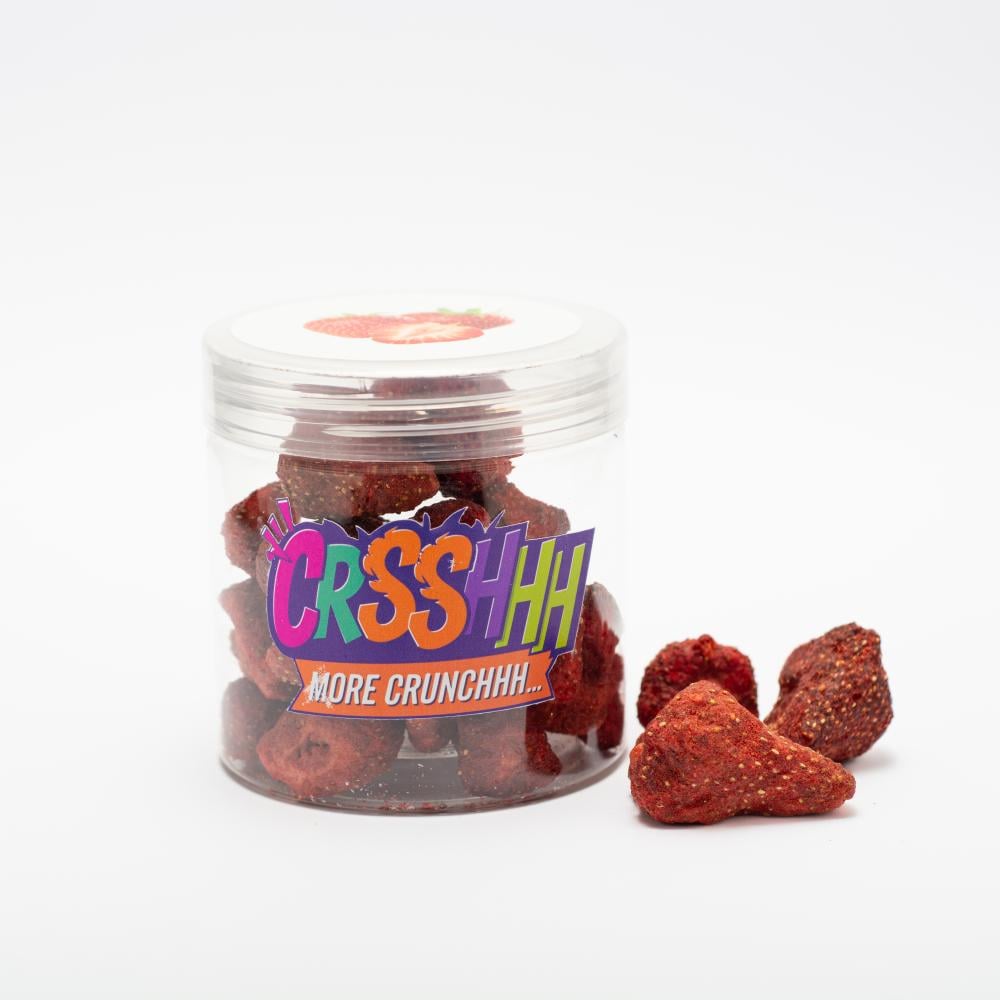 فراولة طبيعية، مجففة بالتبريد للحفاظ على طعمها الحلو والمنعش. خيار مثالي لعشاق الفواكه الطازجة بقوام مقرمش.